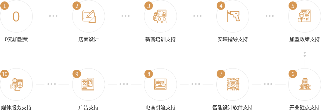 店面上樣折扣優(yōu)惠、店面裝修補貼、新商培訓(xùn)課程、廣告補貼支持等