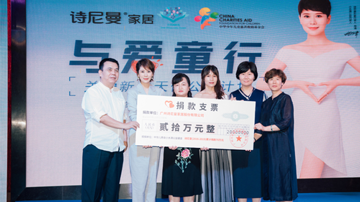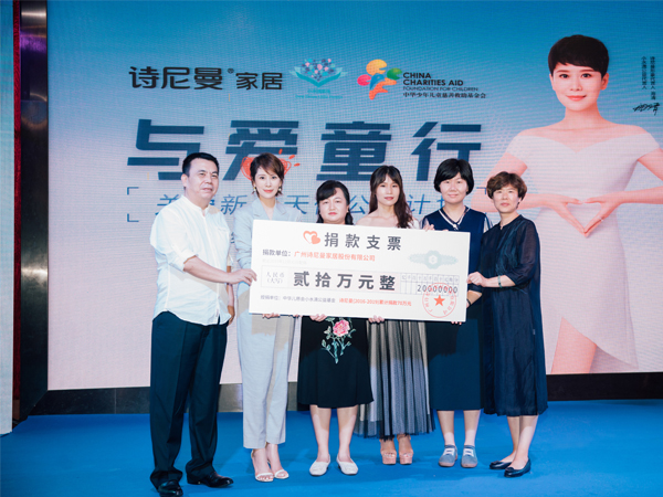 詩尼曼積極履行社會責(zé)任,為社會持續(xù)創(chuàng)造價值。2012年積極響應(yīng)國內(nèi)影響深遠(yuǎn)的“用愛照亮明天”光頭行動, 2013年鼎力支持“陽光天使、點(diǎn)燃夢想”讀書站建設(shè),2015年首創(chuàng)關(guān)愛4類家庭健康居家活動日, 2016年持續(xù)對“小水滴新生”進(jìn)行公益資助,2018年與中華兒慈會發(fā)起“與愛童行”關(guān)愛新生天使公益計劃, 并將“詩尼曼全國旗艦店工藝角”規(guī)劃落地,持續(xù)為小水滴公益進(jìn)行資金和物資資助。近十年來,詩尼曼一直 關(guān)注并助力兒童治療、文化教育等慈善公益。